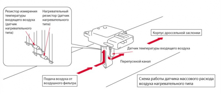 Работа топливной системы заключается в обеспечении поступления воздуха и бензина в двигатель через клапаны в строго определенном соотношении. Для качественного регулирования этого процесса необходимо постоянное и точное измерение объема воздуха.
