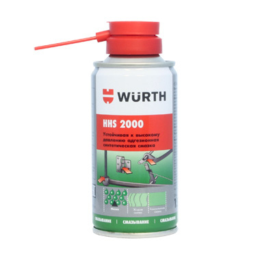 Wurth HHS 2000. Немецкая смазка премиум-класса с отличной проникающей способностью, быстрой загустеванием и хорошей адгезией. Идеальна для смазки петель и замков. Удобна в использовании: поставляется в аэрозольном баллончике, распыляемый состав быстро превращается в густую пленку. Однако она может быть липкой, что приводит к прилипанию грязи и пыли, снижая эффективность. Цена высокая.