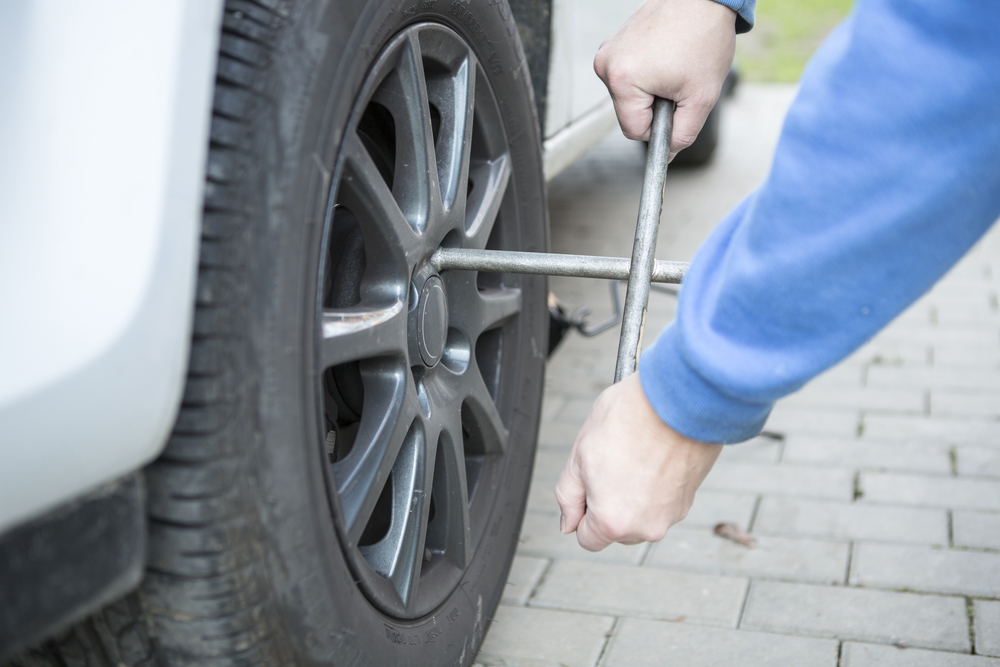 Для снятия колеса нужно с помощью баллонного ключа снять пластиковый колпак с диска и открутить болты. Освобождение крепежа может потребовать значительных усилий; можно надавить на ключ всем телом. Обычно болты не выкручиваются полностью, а проворачиваются на полтора оборота.