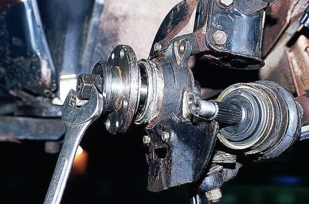 Можно также поднять автомобиль и, ухватившись за пружину, установленную на стойке, поворачивать колесо в разные стороны. Если подшипник неисправен, вы услышите стук и почувствуете люфт.