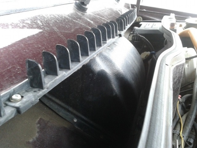 - После этого необходимо снять жабо (планку под дворниками) и резиновый уплотнитель.